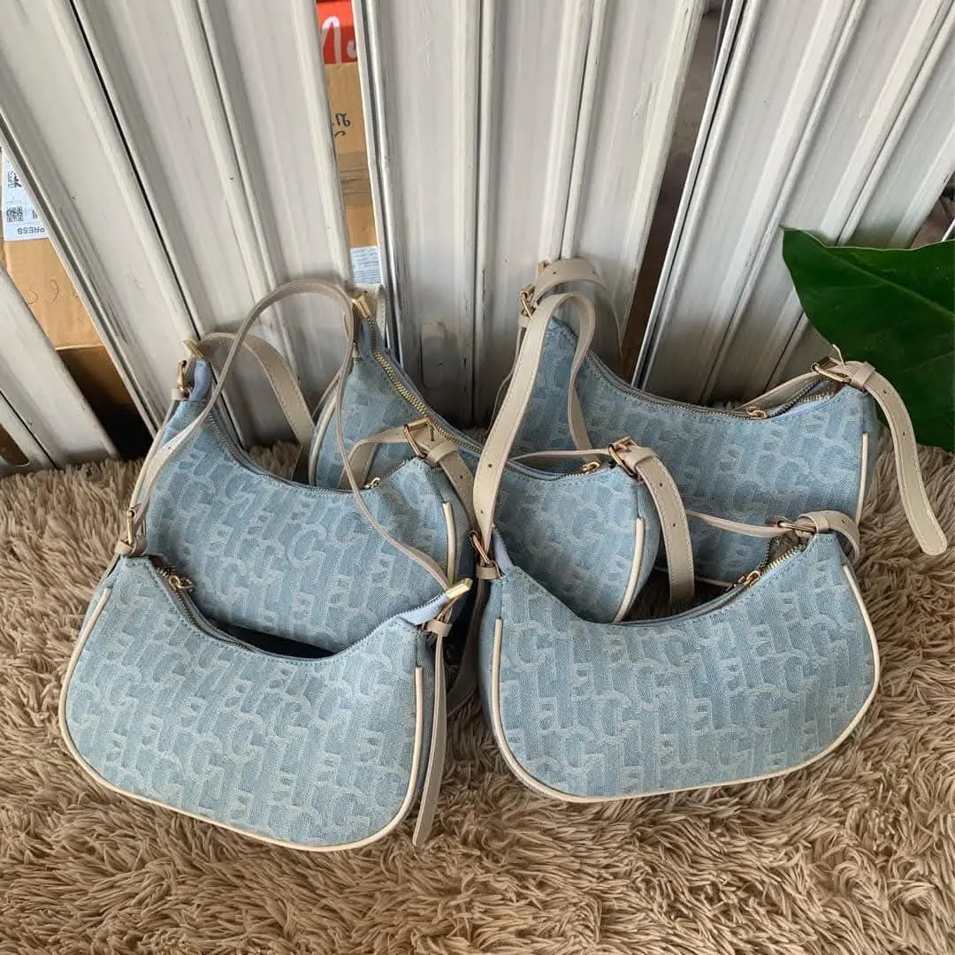 Ladies Moon shape Denim bag. size: length 6” & Width 10”. Full Cash on & home Delivery.