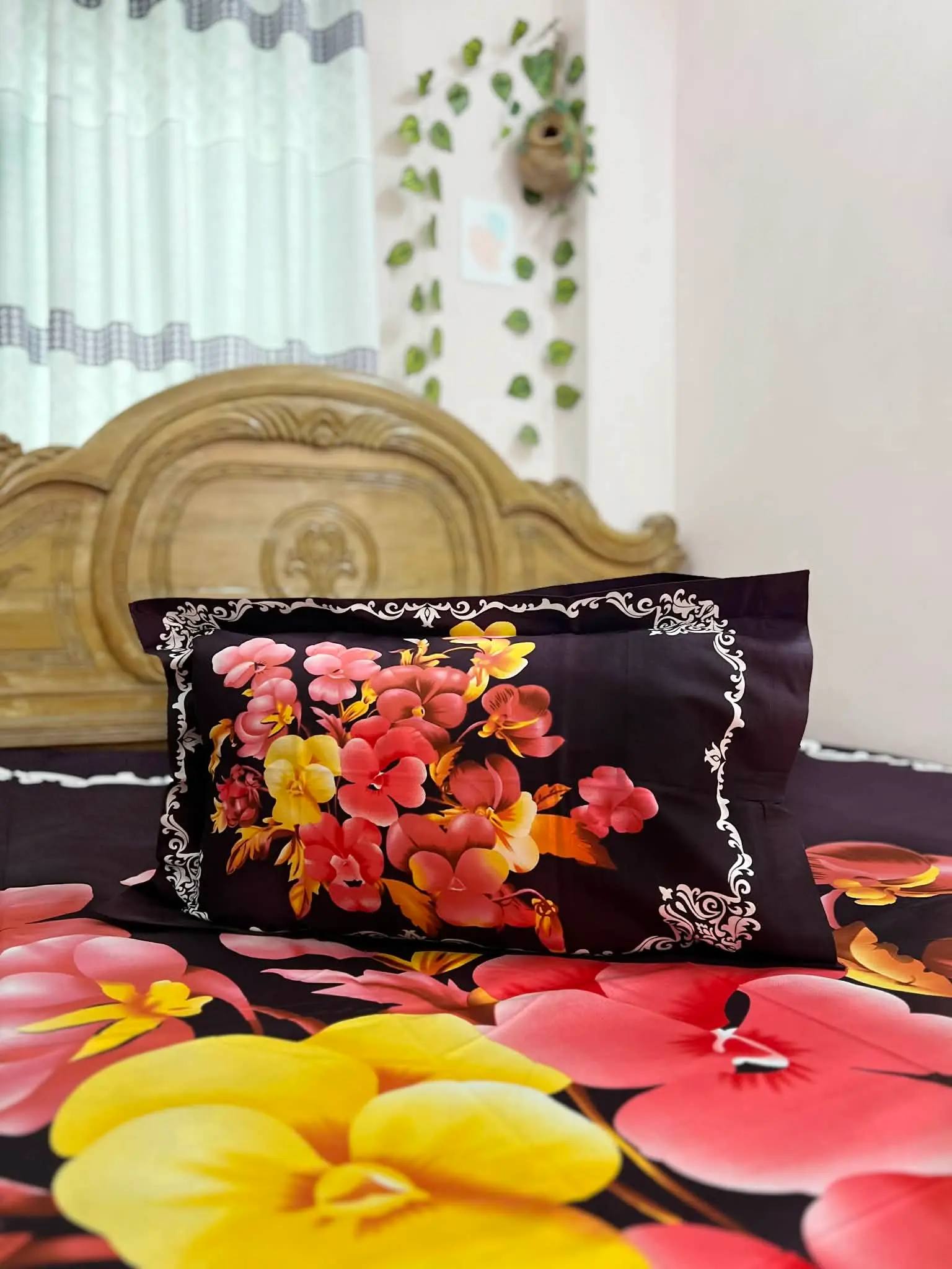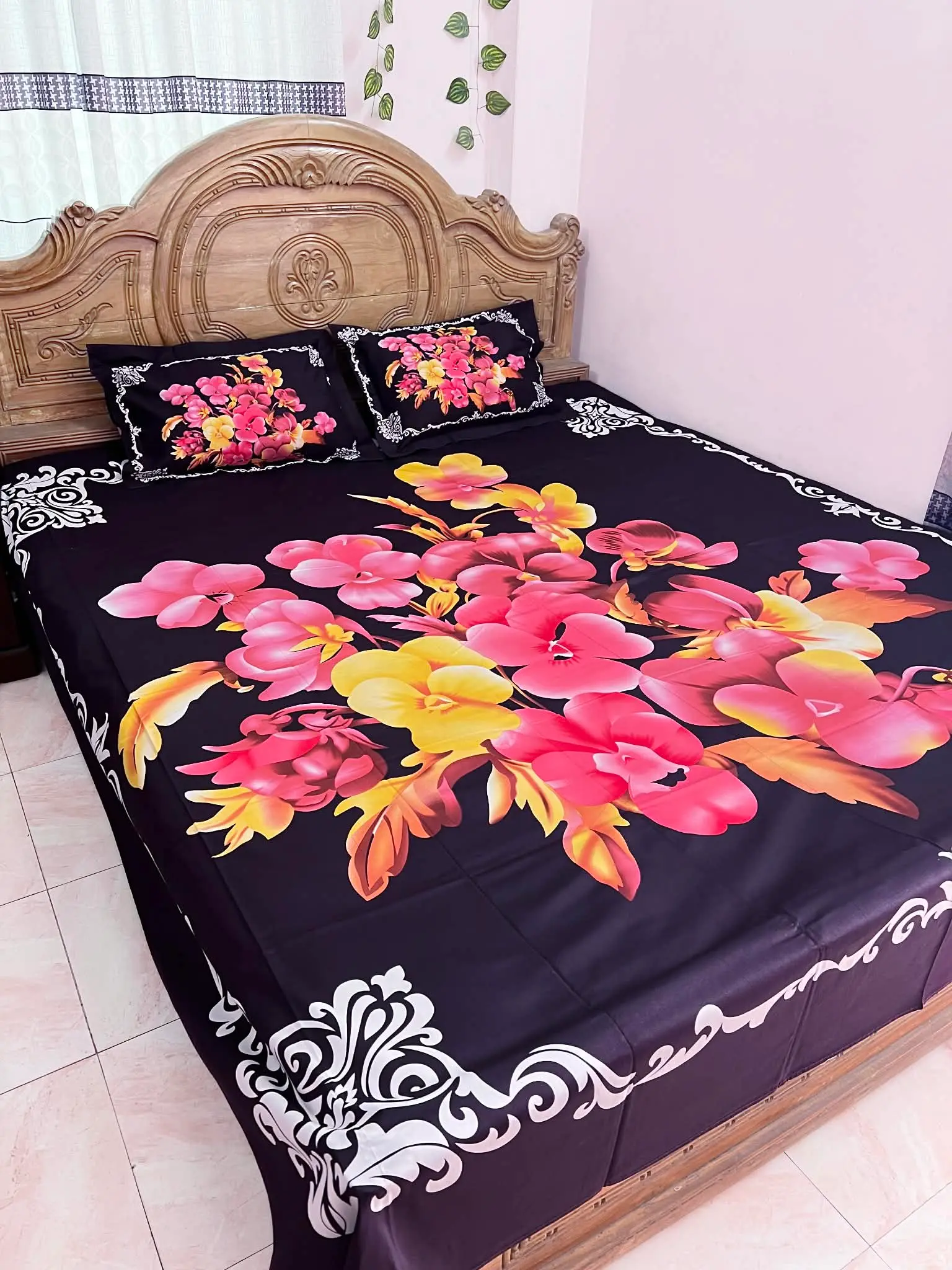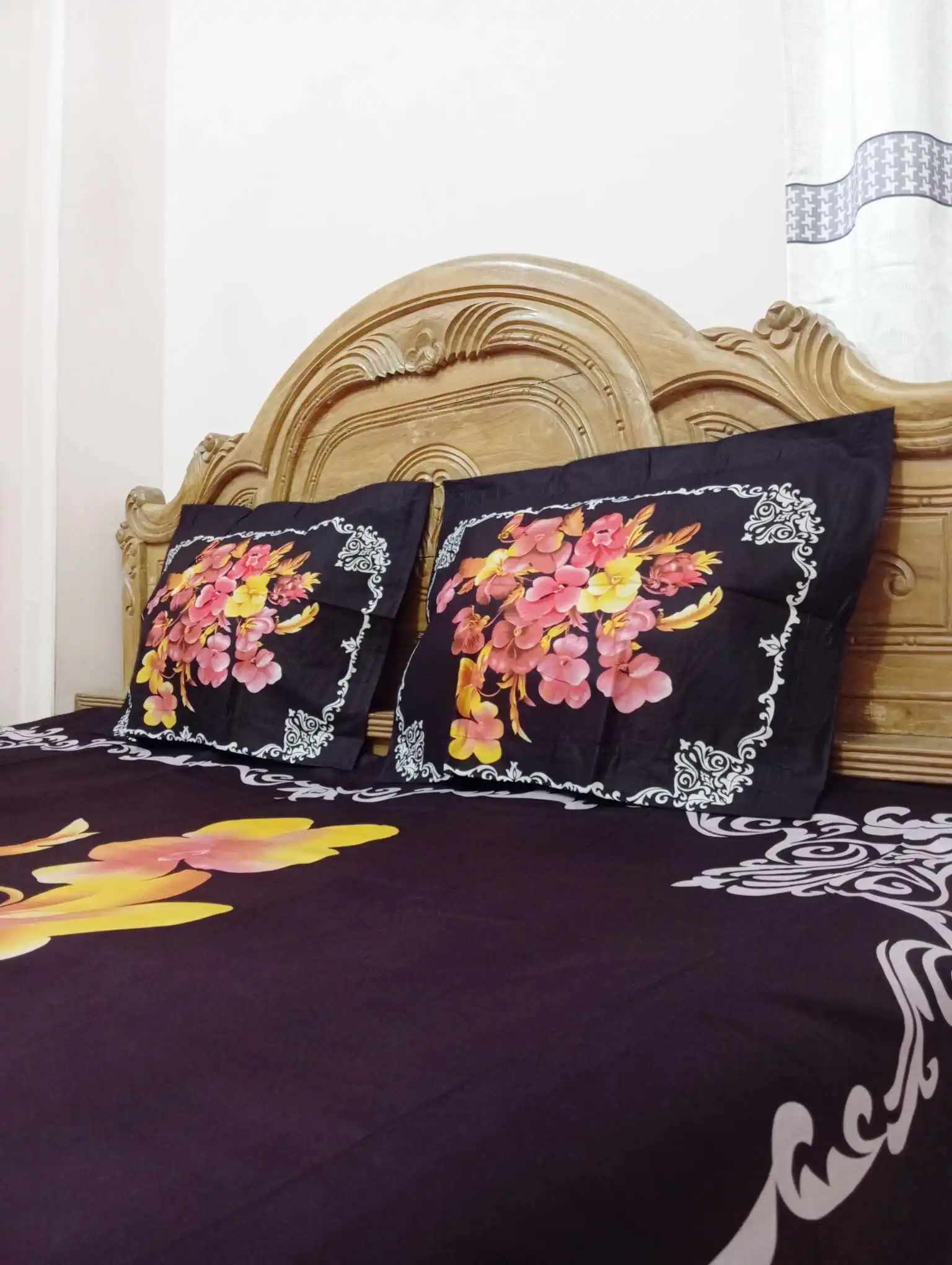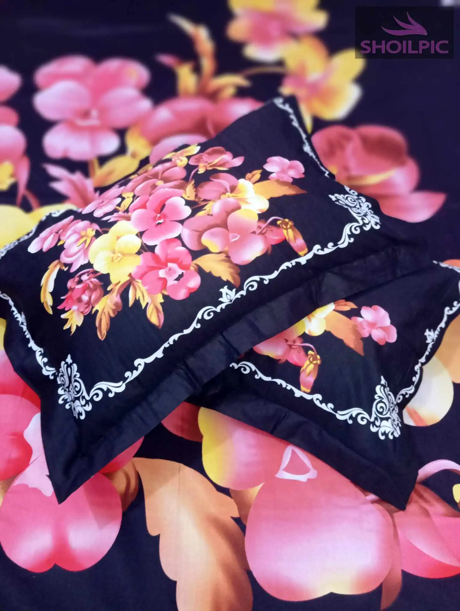 Product details of king size digital print panel bed sheet with two pillow covers and one side pillow cover